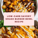The Savory Smash Burger Bowl is a delicious low-carb meal that brings all the flavors of a classic smash burger without the bun. Packed with crispy potatoes, juicy beef, caramelized onions, and a creamy sauce, this bowl is perfect for a satisfying lunch or dinner.