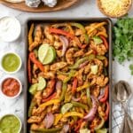 Keywords: sheet pan fajitas, chicken fajitas, baked fajitas, easy dinner, Mexican recipe, one-pan meal, healthy fajitas