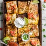 Keywords: sheet pan quesadillas, baked quesadillas, ground beef quesadillas, easy quesadilla recipe, Mexican dinner recipe