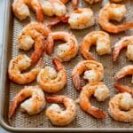 - Step 1: Thaw the shrimp according to package instructions, then rinse them under cold water and thoroughly pat dry with paper towels. Place the shrimp on a large rimmed baking sheet, drizzle with olive oil, and sprinkle with salt and black pepper. Stir gently to coat evenly, then arrange the shrimp in a single layer.
