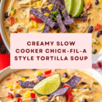 Keywords: Slow cooker tortilla soup, Chick-Fil-A style soup, chicken tortilla soup, easy slow cooker recipe, creamy chicken soup
