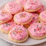 - Frost and Decorate: Spread the frosting evenly over the cooled cookies using an offset spatula or butter knife. If desired, decorate with sprinkles for a festive touch. Let the frosting set slightly before serving.