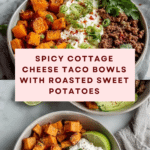 These Spicy Cottage Cheese Taco Bowls combine roasted sweet potatoes, seasoned ground beef, creamy cottage cheese, and fresh avocado for a flavorful and balanced meal. With a perfect blend of smoky spices, a touch of heat from crushed red pepper and hot honey, and a fresh squeeze of lime juice, this recipe offers a deliciously satisfying dish that’s easy to prepare and perfect for a quick weeknight dinner or a hearty lunch.