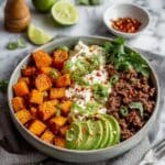 These Spicy Cottage Cheese Taco Bowls combine roasted sweet potatoes, seasoned ground beef, creamy cottage cheese, and fresh avocado for a flavorful and balanced meal. With a perfect blend of smoky spices, a touch of heat from crushed red pepper and hot honey, and a fresh squeeze of lime juice, this recipe offers a deliciously satisfying dish that’s easy to prepare and perfect for a quick weeknight dinner or a hearty lunch.