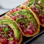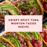 Spicy Tuna Tartare Wonton Tacos combine fresh, flavorful tuna with crispy wonton shells for a delightful bite-sized appetizer or light meal. The mix of creamy, spicy, and tangy ingredients makes this dish irresistibly vibrant and refreshing.