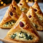 These Spinach, Feta, and Cranberry Puff Pastry Christmas Trees are a festive and delicious appetizer perfect for holiday gatherings. Flaky puff pastry encloses a savory and slightly tangy filling, decorated to resemble charming Christmas trees.