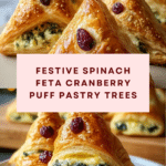 These Spinach, Feta, and Cranberry Puff Pastry Christmas Trees are festive, savory treats perfect for holiday gatherings. Flaky puff pastry is filled with a delightful mixture of fresh spinach, salty feta cheese, and sweet dried cranberries, then baked to golden perfection and shaped like charming Christmas trees. They’re easy to prepare and make an impressive appetizer or snack for the season.
