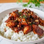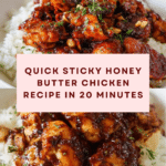 This Sticky Honey Butter Chicken is a quick and delicious meal that’s ready in just 20 minutes. Crispy chicken thighs are coated in a sweet and savory honey butter sauce, making it perfect for a weeknight dinner that feels special.