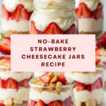 Keywords: Strawberry cheesecake jars, no bake cheesecake, individual desserts, easy summer dessert, strawberry dessert, mason jar desserts