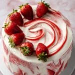 - Decorate with Strawberry Puree (Optional): If using, apply small swipes of the strawberry puree on the top and sides of the cake with a spatula, smoothing to your desired texture and appearance.