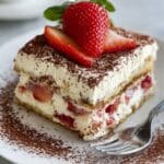 Keywords: Strawberry tiramisu, eggless tiramisu, fruit tiramisu, no coffee tiramisu, Italian dessert, mascarpone dessert, summer dessert