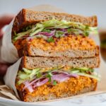 This Sun-Dried Tomato Romesco Chickpea Salad Sandwich is a vibrant and flavorful option perfect for lunch or a light dinner. Packed with a smoky, nutty romesco sauce and hearty chickpeas, it’s both satisfying and easy to make. The roasted cabbage adds a delicious crunch, while the marinated onions bring a tangy brightness.