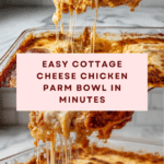 This Super Yummy Cottage Cheese Chicken Parm Bowl is a quick, delicious twist on the classic chicken parmesan. Combining creamy cottage cheese with savory marinara and melty mozzarella makes for a comforting, protein-packed meal ready in minutes.