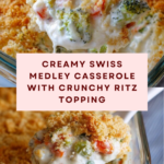 A creamy and comforting Swiss Medley Casserole that combines tender mixed vegetables with a rich blend of sour cream, cream of mushroom soup, and shredded Swiss cheese, topped with buttery, crunchy crushed Ritz crackers, baked to golden perfection for a delicious and easy side dish or light meal.