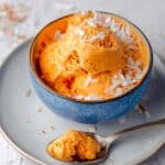 This Thai Tea Ice Cream recipe offers a rich and creamy frozen dessert infused with the vibrant flavors of traditional Thai tea. Creamy condensed milk and whipped heavy cream blend with aromatic tea, creating a uniquely bright orange ice cream experience topped with toasted coconut flakes for added texture and flavor.