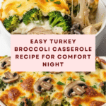 This comforting Turkey Broccoli Casserole combines tender cooked turkey with nutritious broccoli and mushrooms, all baked in a creamy cheese sauce. It’s an easy one-dish meal, perfect for using leftover turkey and creating a warm, hearty dinner the whole family will love.