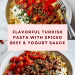 This Turkish Pasta recipe combines tender pasta with a flavorful spiced ground beef sauce, creamy garlic yogurt, and a rich paprika butter drizzle. It’s a delicious twist on traditional pasta that brings bold, comforting flavors to your table.