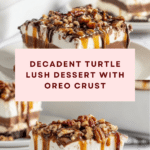 Turtle Lush is a decadent layered dessert featuring a crunchy Oreo crust, smooth cream cheese filling, rich chocolate pudding, and a luscious whipped topping. Finished with drizzles of caramel and chocolate syrup and a generous sprinkle of pecans, this no-bake treat is perfect for chocolate and caramel lovers seeking an easy yet impressive sweet.