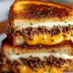 This Ultimate Cheesy Ground Beef Melt is a deliciously hearty sandwich featuring seasoned ground beef layered with melted cheddar and mozzarella cheeses between thick-cut buttered bread. Perfectly toasted in a skillet until golden and gooey, it’s an easy and satisfying meal great for lunch or dinner.