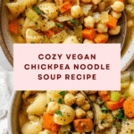This Vegan Chickpea Noodle Soup is a comforting and wholesome dish perfect for any day. Packed with hearty chickpeas, fresh vegetables, and tender noodles, it is both filling and flavorful. Whether you make it on the stove or in a crockpot, it’s easy to prepare and sure to warm you up.