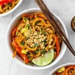 Store leftover Vegan Pad Thai in an airtight container in the refrigerator for up to 3 days. Reheat gently in a skillet over medium-low heat, adding a splash of water or oil to prevent sticking. This dish can also be frozen, but note that some vegetables may become softer upon thawing.