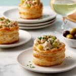 Keywords: Vol-au-vent, puff pastry, chicken filling, bacon, French appetizer, creamy filling, party recipe