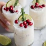 The White Christmas Margarita is a creamy and refreshing holiday cocktail that combines rich coconut milk and coconut water with the bright flavors of lime and tequila. Enhanced with Grand Marnier and lightly sweetened with agave syrup, this festive drink is elegantly garnished with cranberries, lime slices, and rosemary sprigs, making it perfect for winter celebrations.